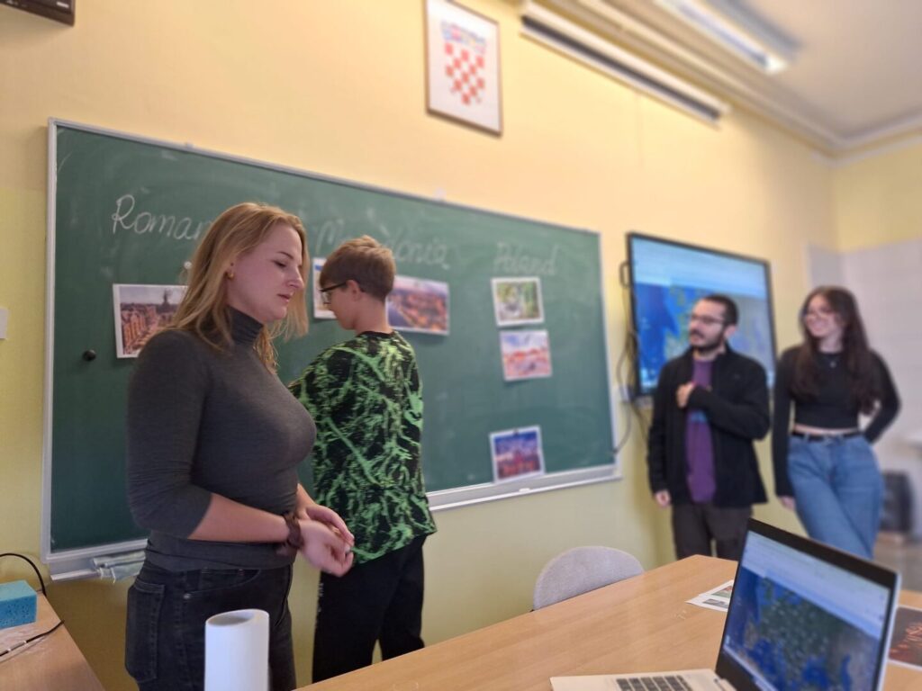 Poseban dio obilježavanja bio je dolazak međunarodnih volontera iz udruge O.A.Z.A. koji su učenicima viših razreda približili ljepotu svojih jezika i kultura. Volonteri iz Poljske, Rumunjske, Sjeverne Makedonije, Njemačke i Portugala osmislili su interaktivne igre i kvizove, poticali učenike na pogađanje jezika te predstavili zanimljivosti o svojim zemljama. Kroz priče o poznatim osobama poput Drakule, Chopina, Esme Redžepove i Marie Skłodowske-Curie, učenici su otkrivali povezanost jezika, povijesti i kulture.