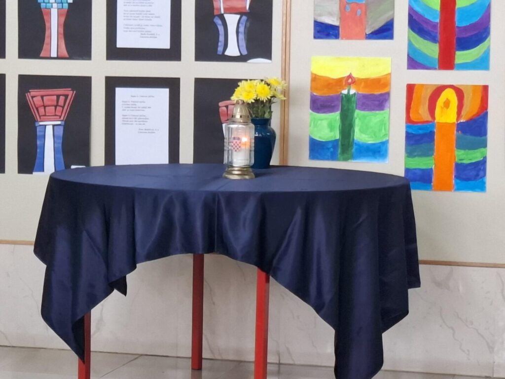 U predvorju naše škole vladala je tiha, dostojanstvena atmosfera dok su osmaši zauzimali svoja mjesta i pripremali se za program posvećen Danu sjećanja na žrtve Domovinskog rata te Danu sjećanja na žrtvu Vukovara i Škabrnje. Dan sjećanja obilježili smo u srijedu 19. studenoga 2025., s jasnom željom da uz pažljivo pripremljen program odamo počast svima koji su dali svoje živote za slobodu naše domovine.
