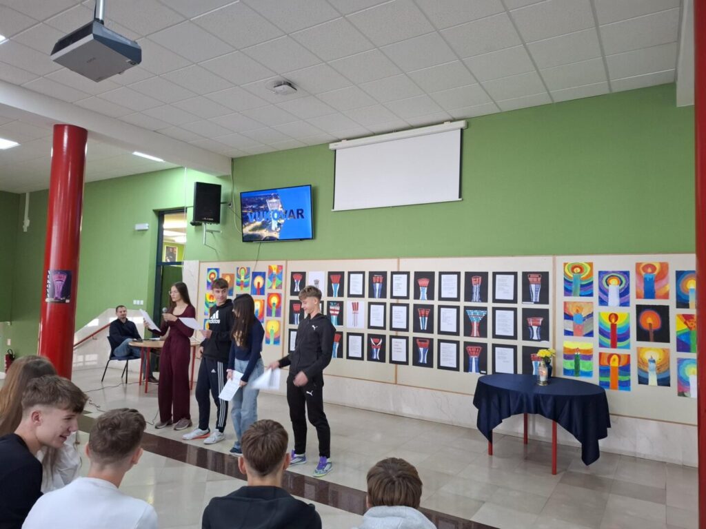 Na kraju se učenicima obratila ravnateljica, zahvalila je sudionicima i istaknula važnost očuvanja sjećanja te međusobnog poštovanja. Cijelo je obilježavanje proteklo u mirnom i dostojanstvenom tonu, ostavljajući snažan dojam i podsjećajući nas da je sjećanje temelj zahvalnosti.